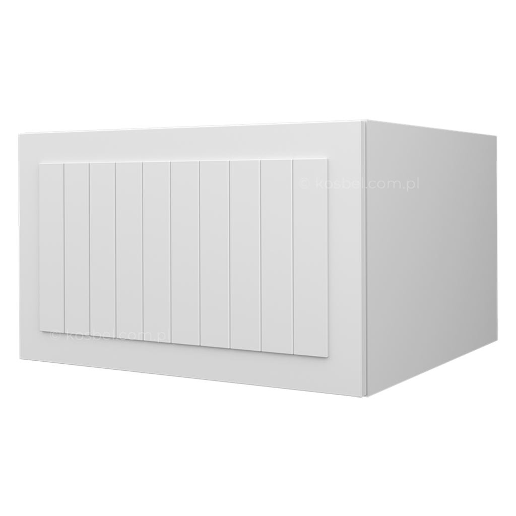 NIESTANDARDOWA WYSOKOŚĆ FRONTU - szafka z dłuższą wysokością frontu niż standardowy zapewnia bezuchwytowe otwieranie szafki; front wystaje poniżej dolnej części korpusu.