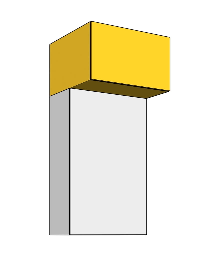 NIESTANDARDOWA WYSOKOŚĆ FRONTU - szafka z dłuższą wysokością frontu niż standardowy zapewnia bezuchwytowe otwieranie szafki; front wystaje poniżej dolnej części korpusu.