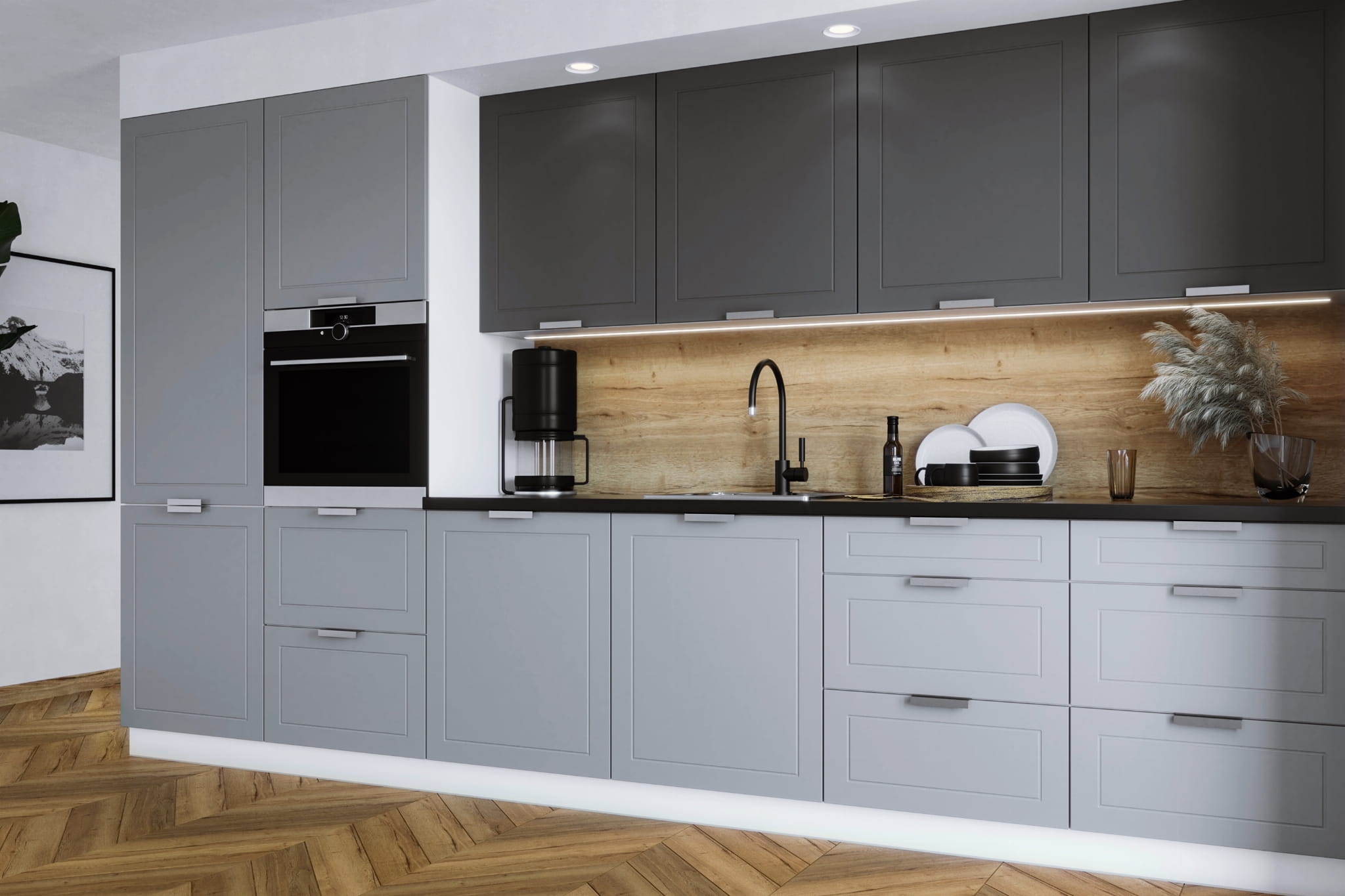 QUATRO PLUS - Zestaw mebli kuchennych modułowych, lakierowanych w macie