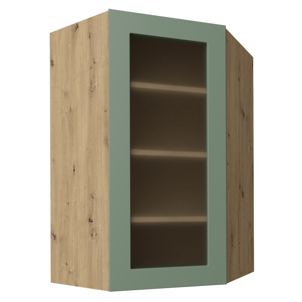 Szafka wisząca, narożna z jednym frontem z szybą - wys. 96 cm | Cannes mat (W4/10S 60)