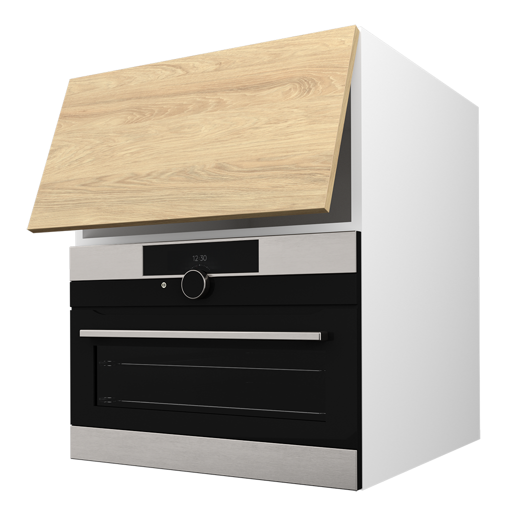 - W zestawie z tą szafką otrzymasz korpus (obudowa w wybranym kolorze), front (drzwi w wybranym kolorze), siłowniki gazowe, brak uchwytu w zestawie