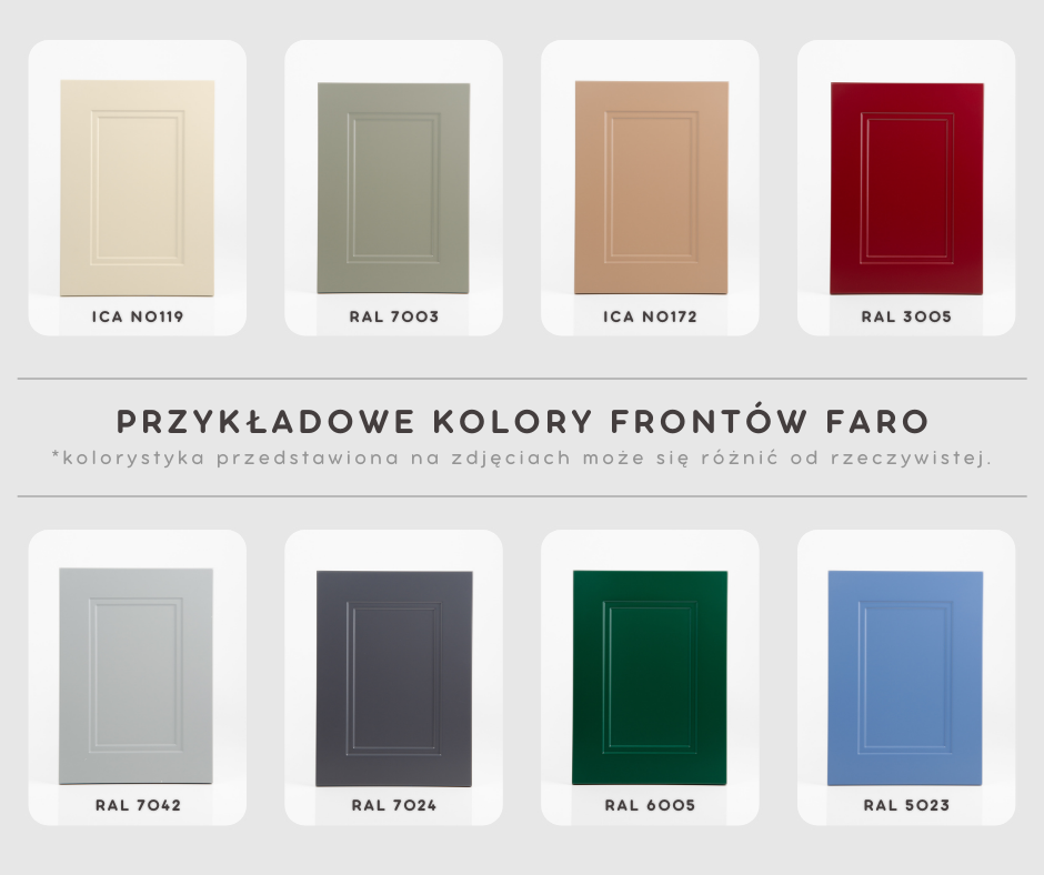 Kolor frontu: według klienta - paleta RAL K7 oraz ICA