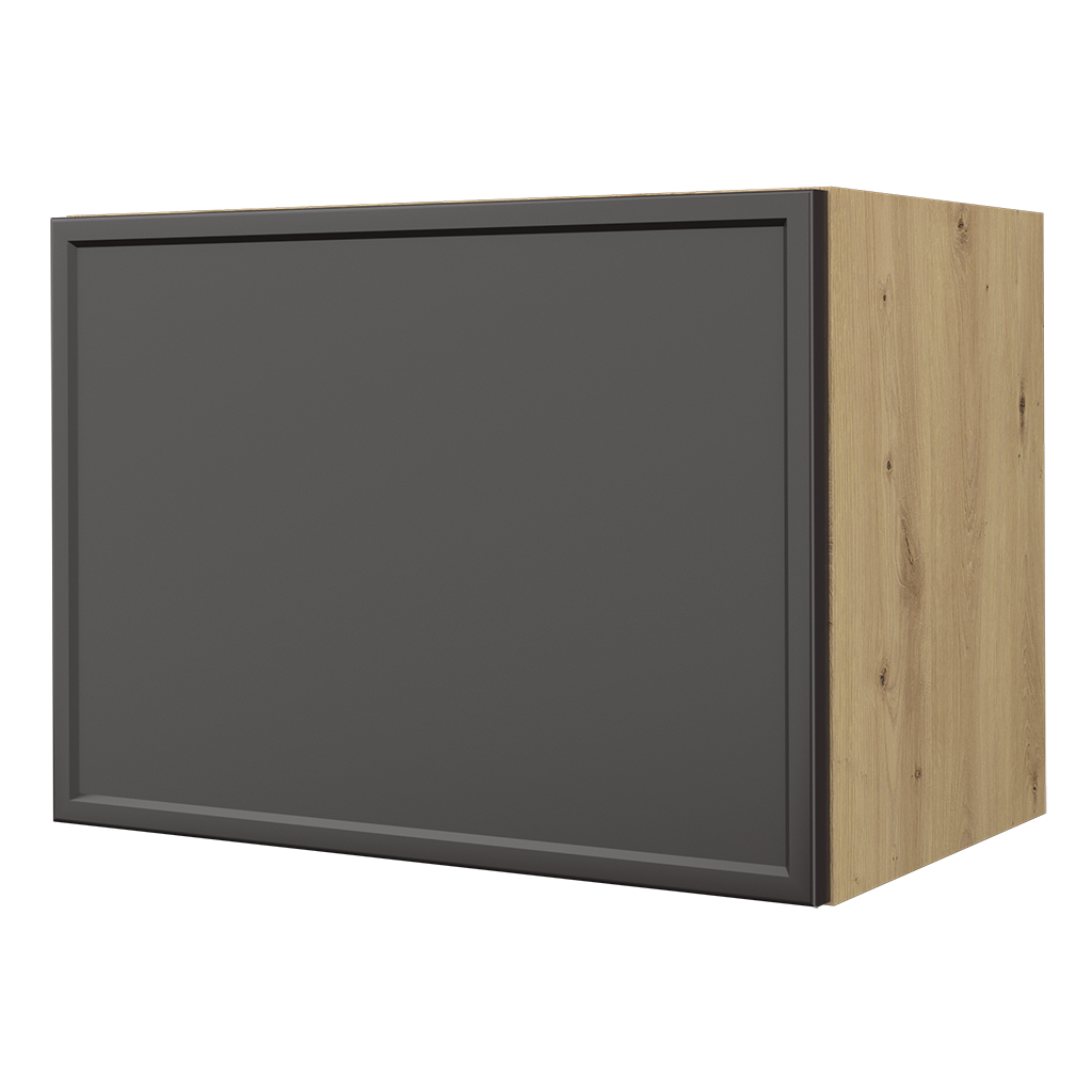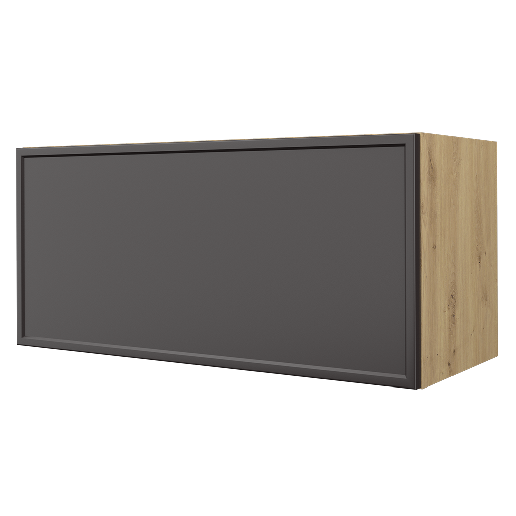 NIESTANDARDOWA WYSOKOŚĆ FRONTU - szafka z dłuższą wysokością frontu niż standardowy zapewnia bezuchwytowe otwieranie szafki; front wystaje poniżej dolnej części korpusu.