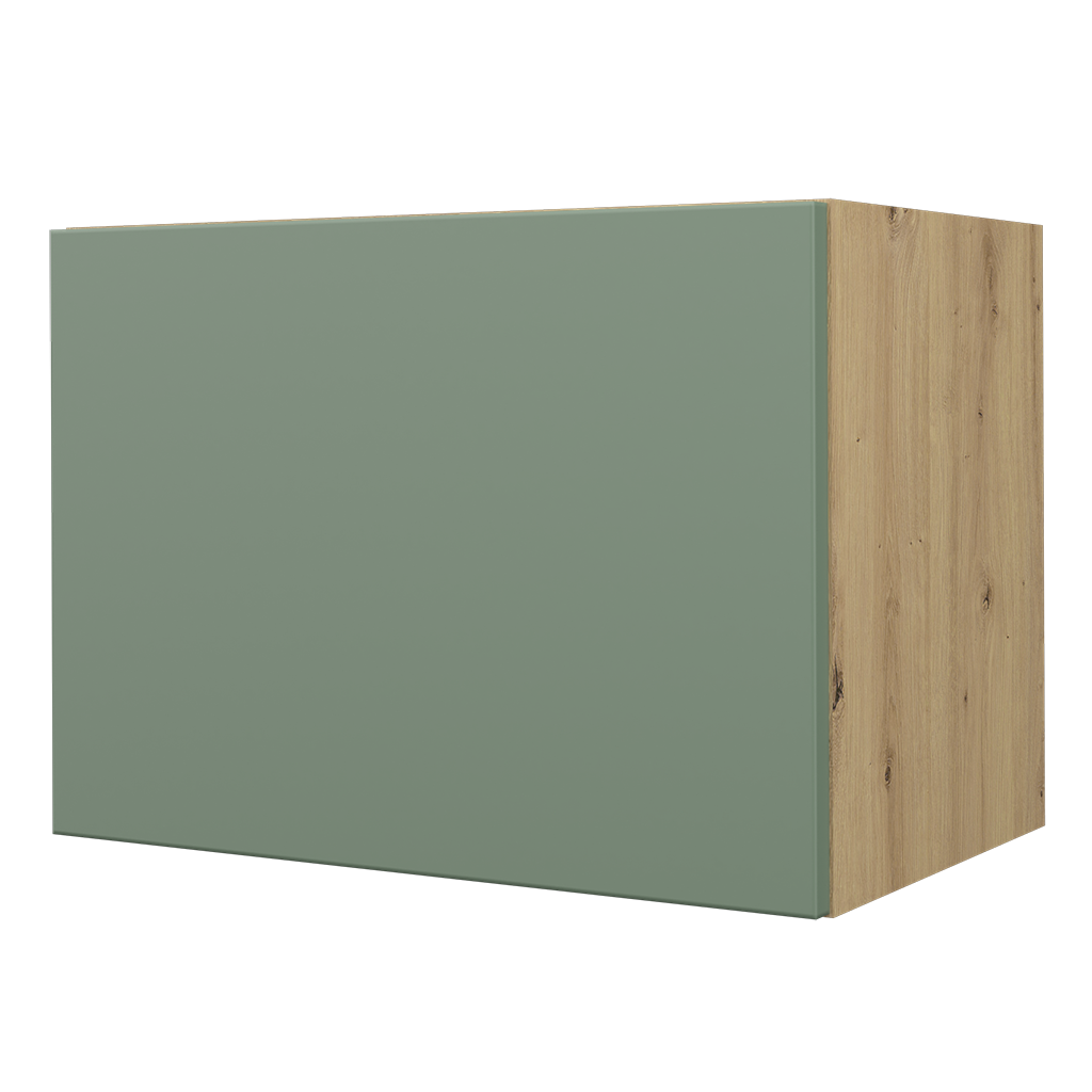 NIESTANDARDOWA WYSOKOŚĆ FRONTU - szafka z dłuższą wysokością frontu niż standardowy zapewnia bezuchwytowe otwieranie szafki; front wystaje poniżej dolnej części korpusu.
