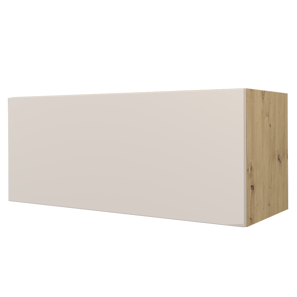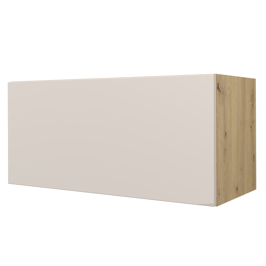 NIESTANDARDOWA WYSOKOŚĆ FRONTU - szafka z dłuższą wysokością frontu niż standardowy zapewnia bezuchwytowe otwieranie szafki; front wystaje poniżej dolnej części korpusu.