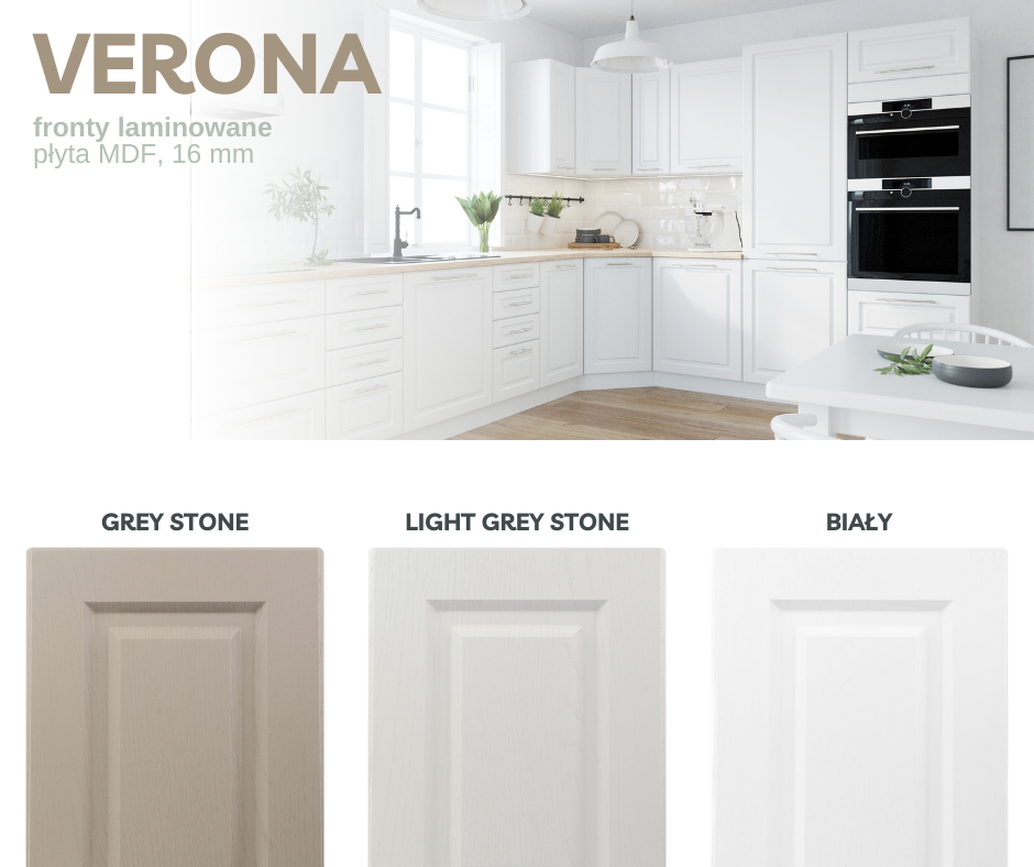 VERONA - Zestaw mebli kuchennych modułowych, laminowanych w macie